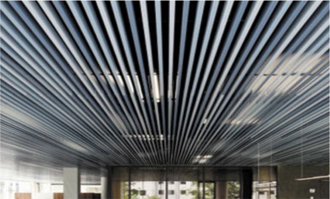 U-Shaped Baffle Open ceiling is featured by graceful and elegant line, and amazing curtain effect when installed in appropriate height and angle. Baffle Ceilings create unique room atmospheres. The free space between the baffles is optimally suitable for the integration of luminaries, sprinkler, smoke detectors, security systems and air conditioning or similar.